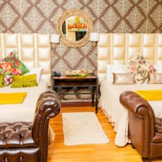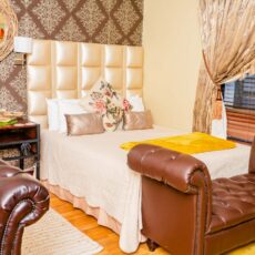 The name comes from a group of perennials of the genus Lilium, often called the true lilies also stands for purity. This bedroom is designed to reflect the essence of understated elegance and comfort. Whether visitors intend on staying for a weekend or longer, they are captivated by the beauty and scenery that the room has to offer, en-suite guest room, designed with a clear traditional flair, yet have a very stylish and quirky aspect to the interiors, that include beautiful solid wood floors, and unique design aspect with a view to respecting and retaining the charm and character of yesterday while combining touches of modern style and luxury to maximise guest comfort and enjoyment.