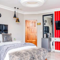 This room is named after a flower called Heather (Calluna vulgaris) which is an evergreen branching shrub. Heather flowers bloom in late summer. Wild species of Heather flowers are usually in purple or mauve shades. The flower’s various cultivars come in colours ranging from white, through pink, a wide range of purples and reds. This queen size bedroom has been decorated in the colours closest to the Heather flower which provides everlasting memory and tranquillity leading to interesting effects. This spacious bedroom overlooking the rainforest-covered mountain has a separate private en-suite featuring toilet, shower and bath with a generous vanity unit. The room is fitted with a bar fridge to provide all that is desired for a change of scene away from home.